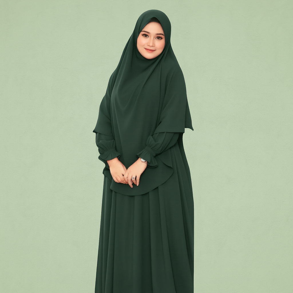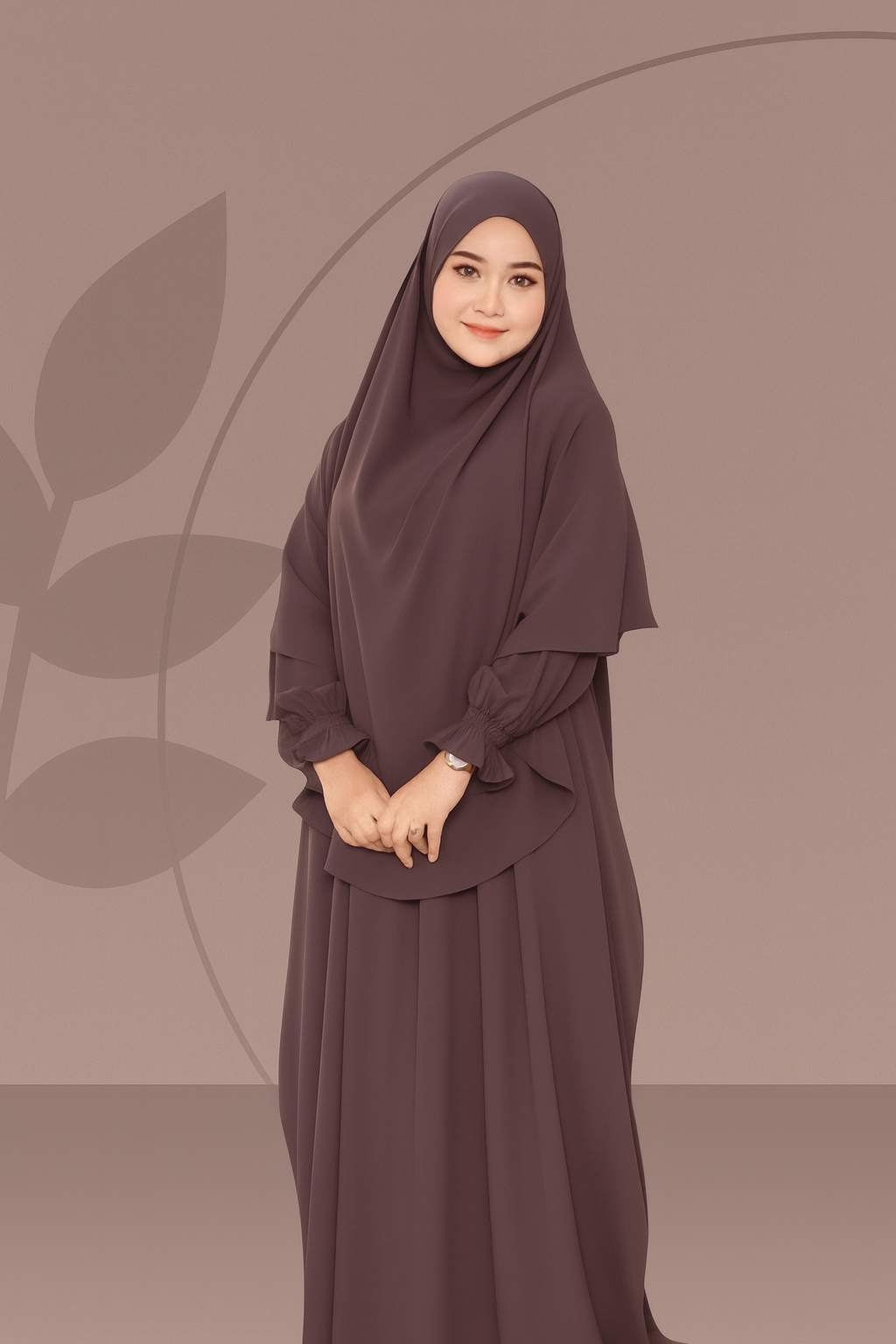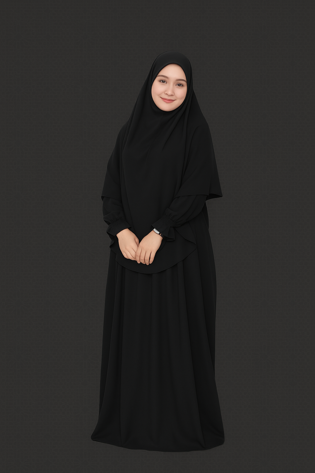 هنا تجتمعُ الخامةُ المُحكمةُ للدريس التي تضمن الثباتَ طول اليوم، مع القماش الناعم الفاخر للخمار الذي يضمن الانسيابَ الهادئَ والراحة المُطلقة. لِيُشكّلوا معاً هيئةً واحدةً متكاملةً مُريحة. كل قطعةٍ تُكمّلُ الأخرى بجودة النسيجِ العاليةِ، لِتمنحكِ إطلالةً لا تُضاهى، تَعكسُ عُمقَ الذوقِ والاحتِشامِ المَلَكِيِّ.